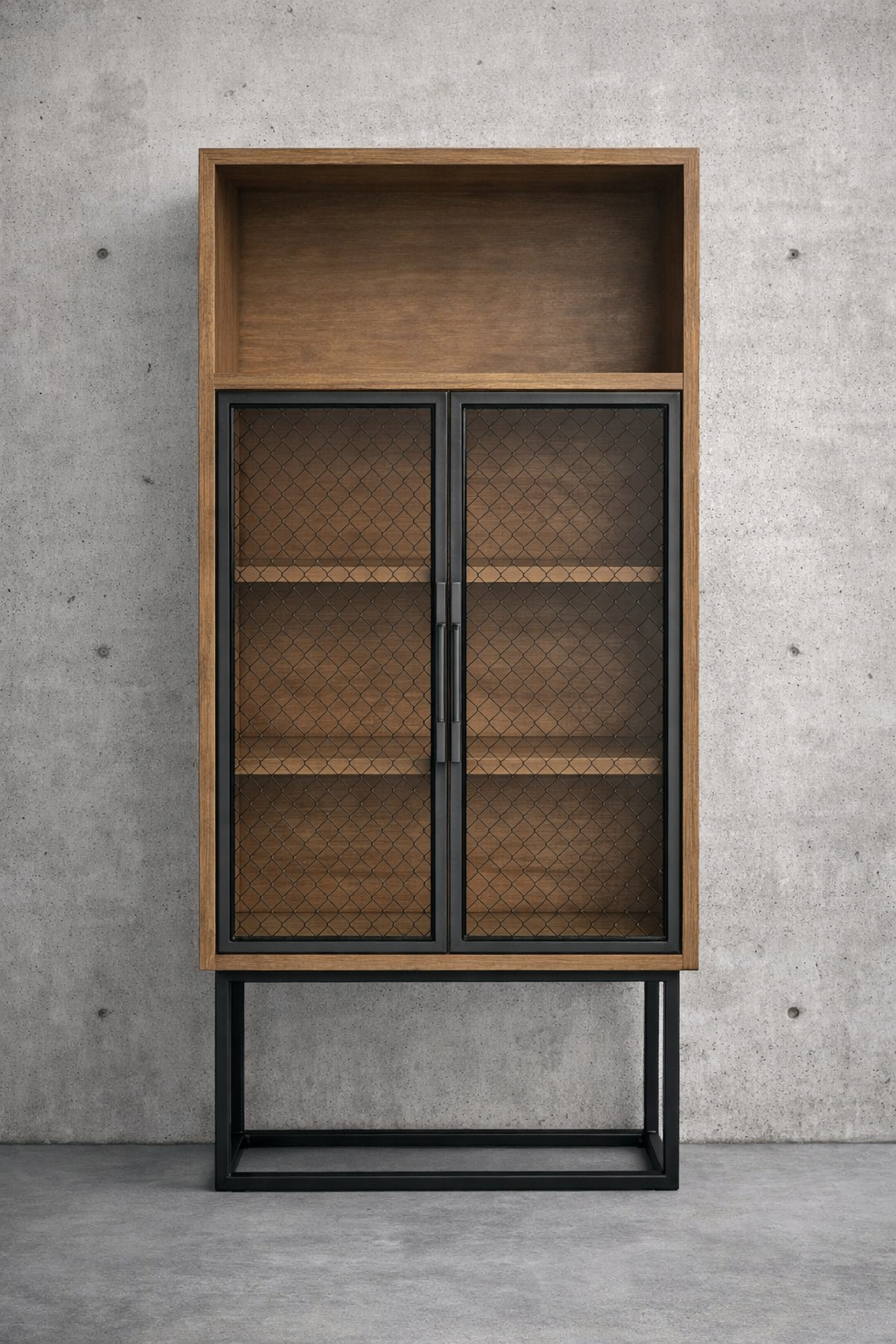 * Wood cabinet with open upper shelf