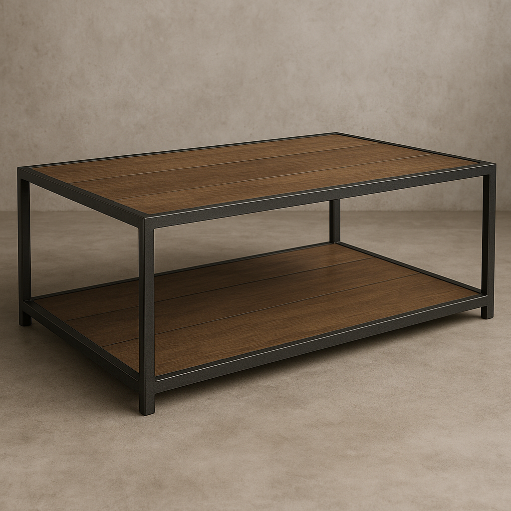 | Accent | Bread Boarding, Floating Top, Industrial Strap, Over Table Encasing, Rivets, Steel Top, Steel Tubing, Under Table Encasing |