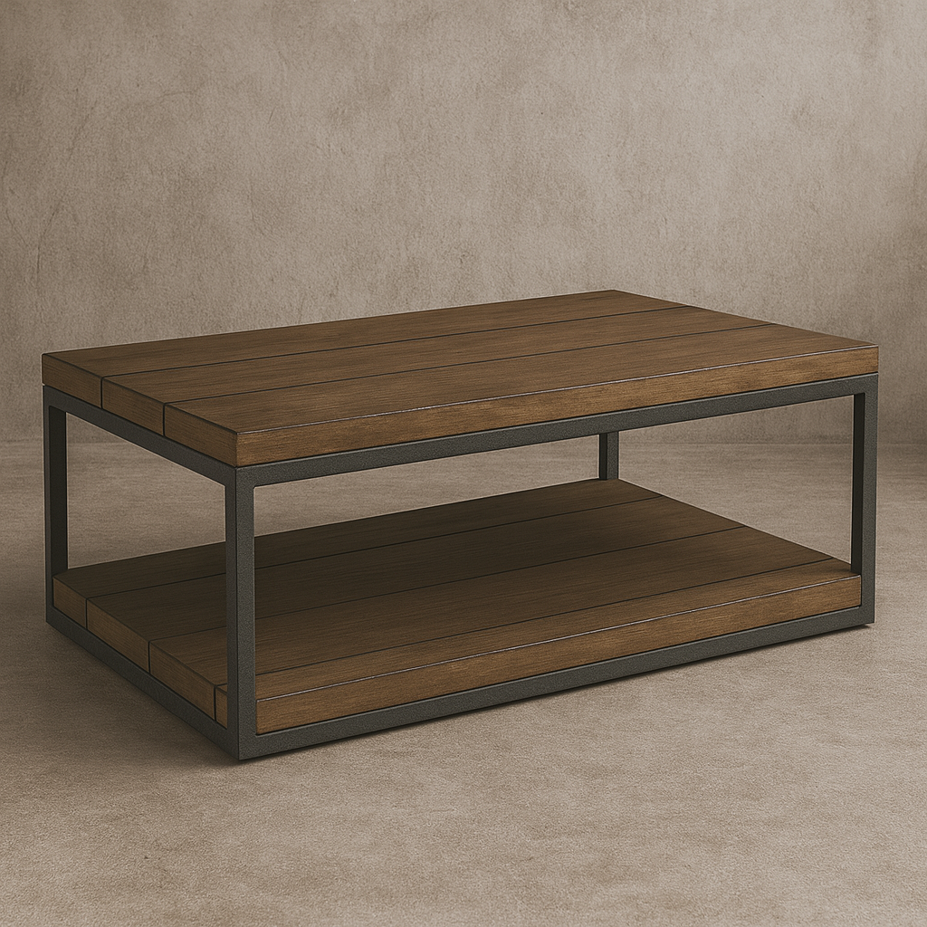 | Accent | Bread Boarding, Floating Top, Industrial Strap, Over Table Encasing, Rivets, Steel Top, Steel Tubing, Under Table Encasing |