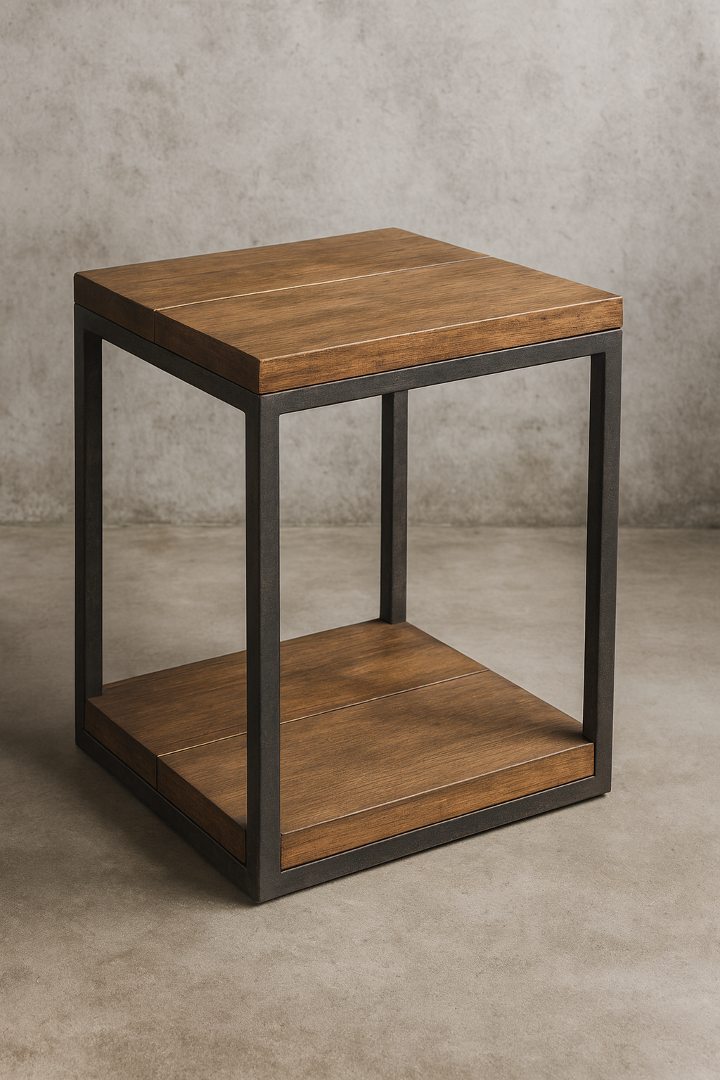 | Accent | Bread Boarding, Floating Top, Industrial Strap, Over Table Encasing, Rivets, Steel Top, Steel Tubing, Under Table Encasing |