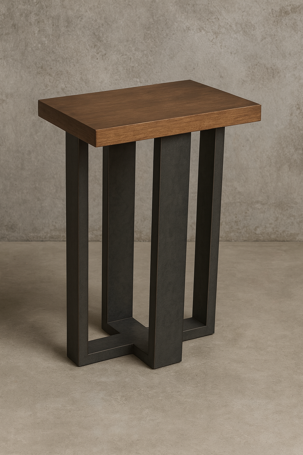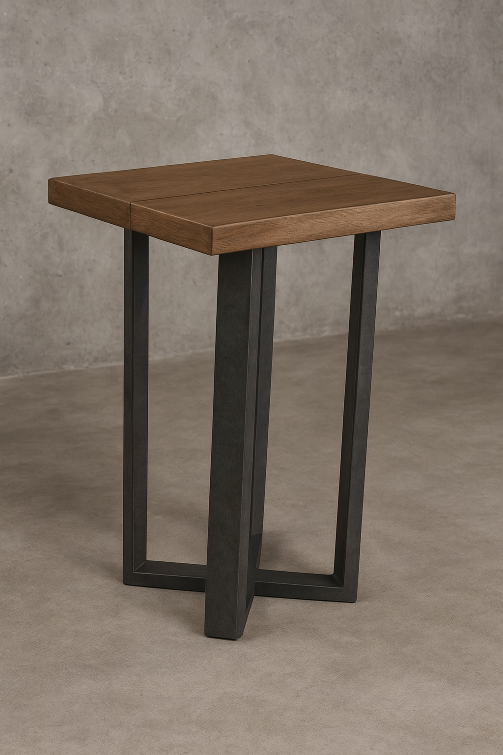 Bread Boarding, Floating Top, Industrial Strap, Over Table Encasing, Rivets, Steel Top, Steel Tubing, Under Table Encasing
