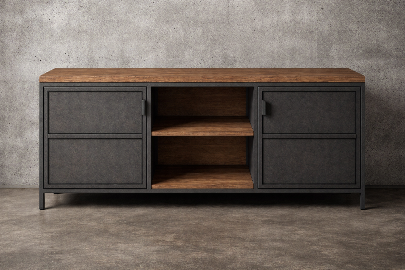 | Accent | Bread Boarding, Floating Top, Industrial Strap, Over Table Encasing, Rivets, Steel Top |