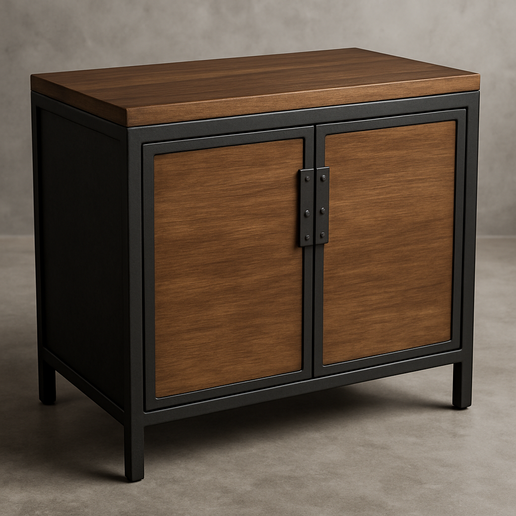 | Accent | Bread Boarding, Floating Top, Industrial Strap, Over Table Encasing, Rivets, Steel Top |