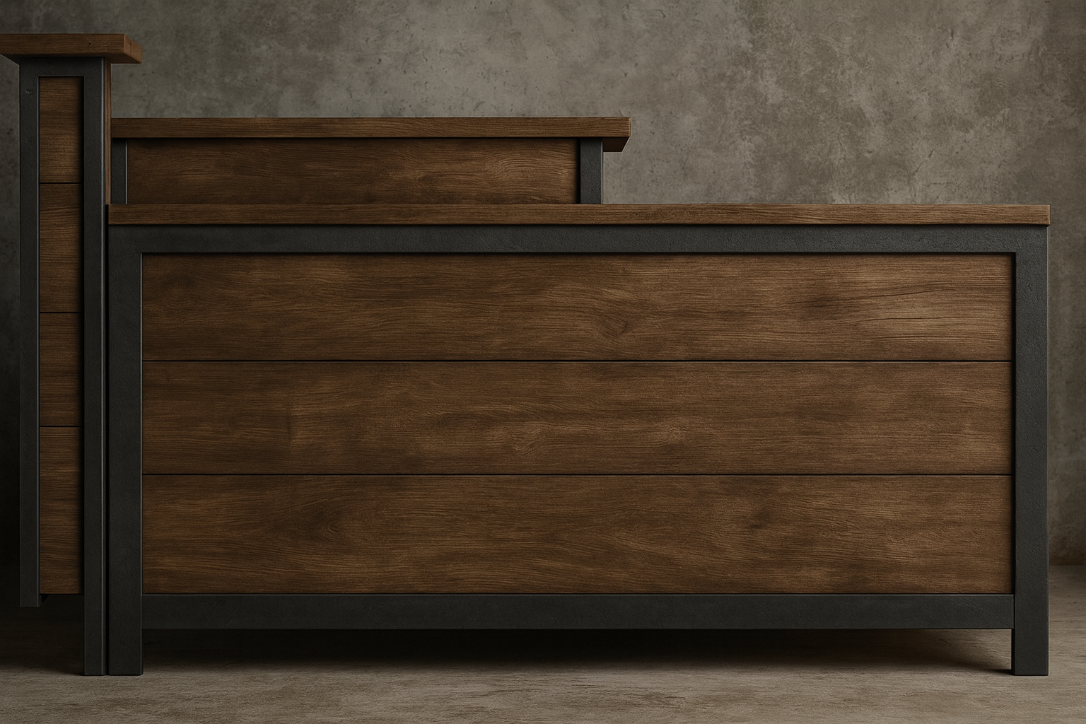 * Wood panels with dark framing