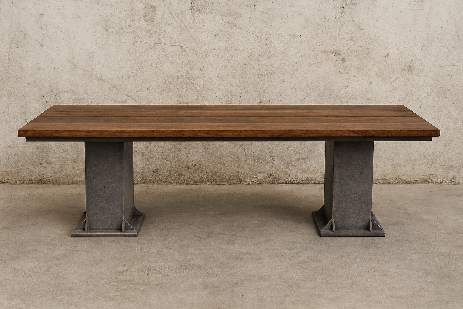 | Accent | Bread Boarding, Floating Top, Industrial Strap, Over Table Encasing, Rivets, Steel Top, Steel Tubing, Under Table Encasing |