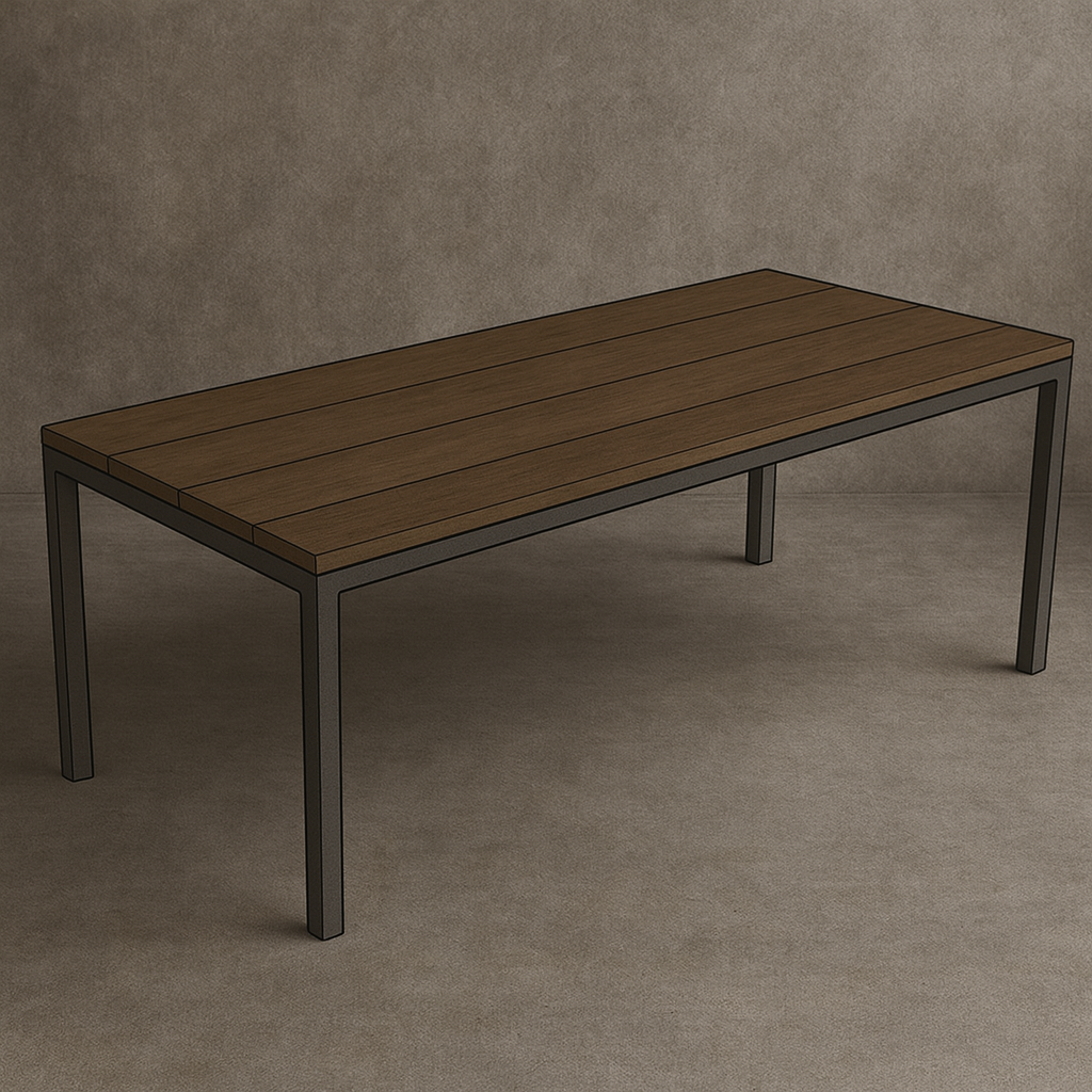 | Accent | Bread Boarding, Floating Top, Industrial Strap, Over Table Encasing, Rivets, Steel Top, Steel Tubing, Under Table Encasing |