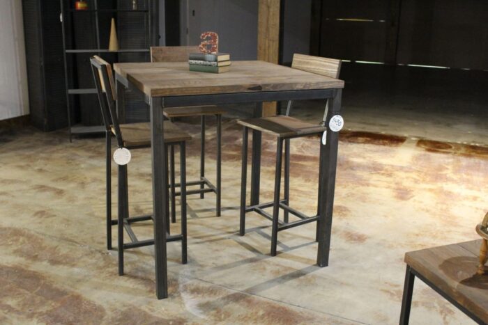 This table features a beautifully reclaimed wood surface with a rich, natural finish that radiates rustic appeal. Its robust black metal frame introduces a modern industrial edge, ensuring both style and longevity.