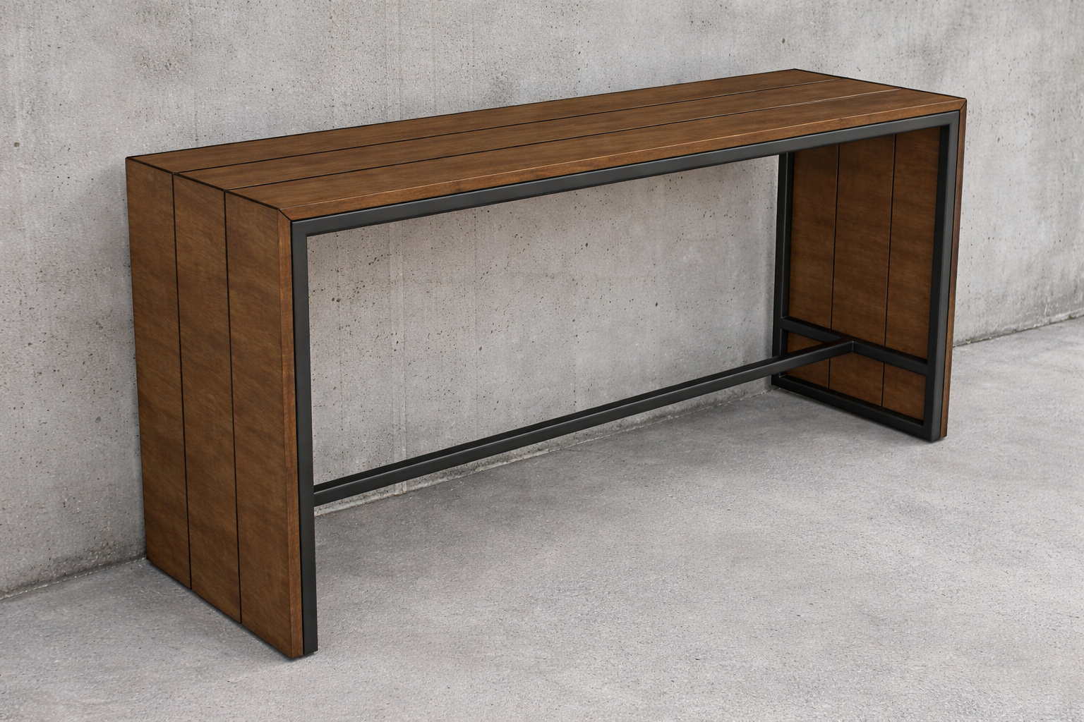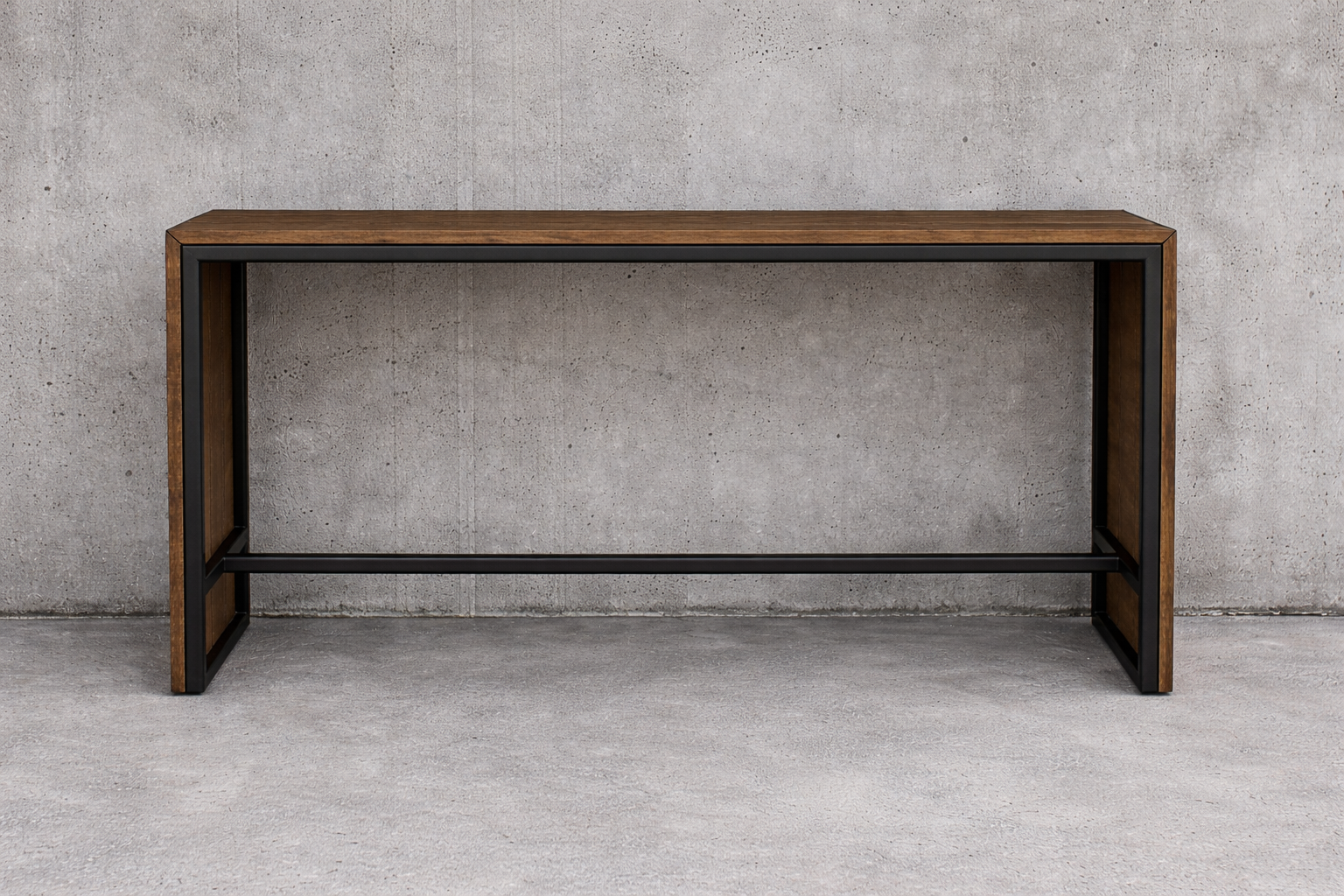 | Accent | Bread Boarding, Floating Top, Industrial Strap, Over Table Encasing, Rivets, Steel Top, Steel Tubing, Under Table Encasing |