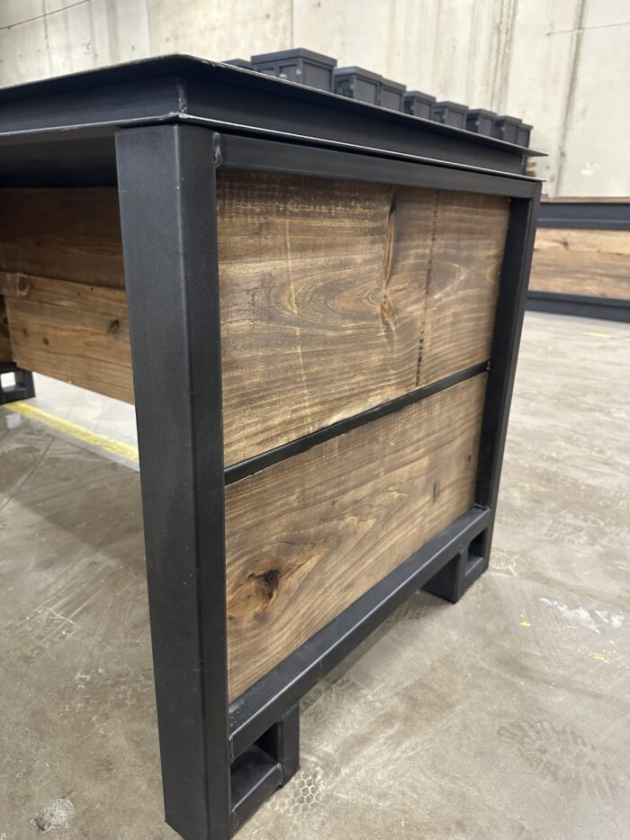 * Steel accent strips between wood boards for added detail