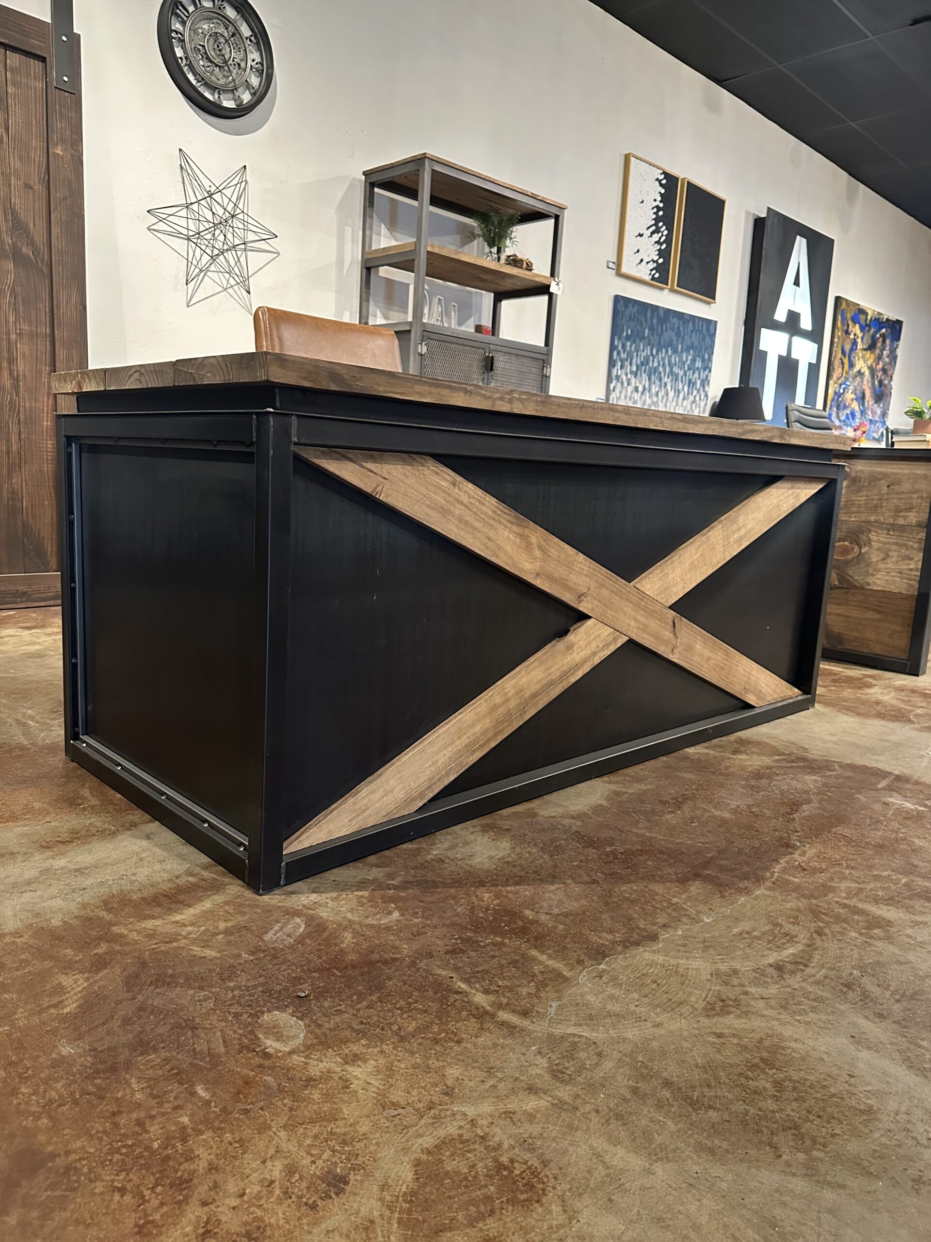 * Wood X-shaped accent